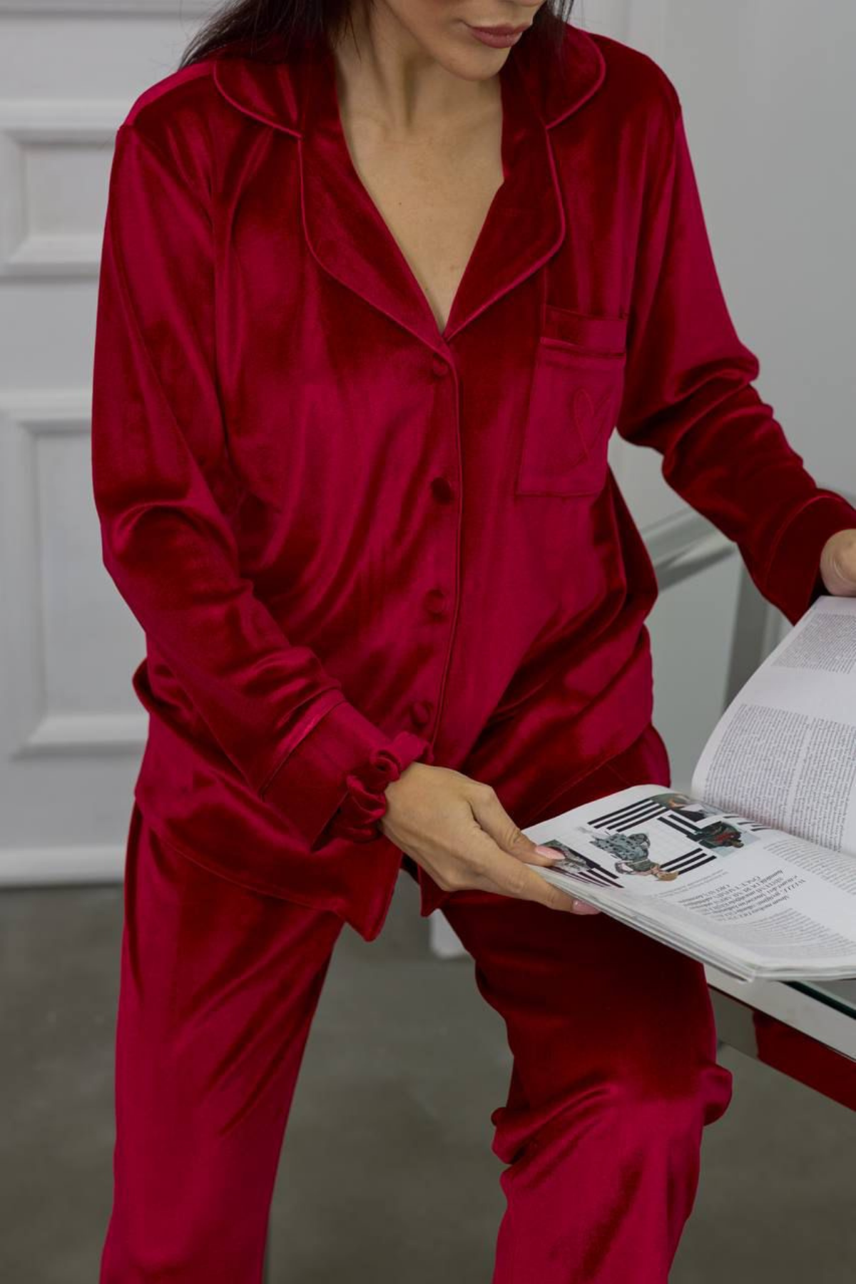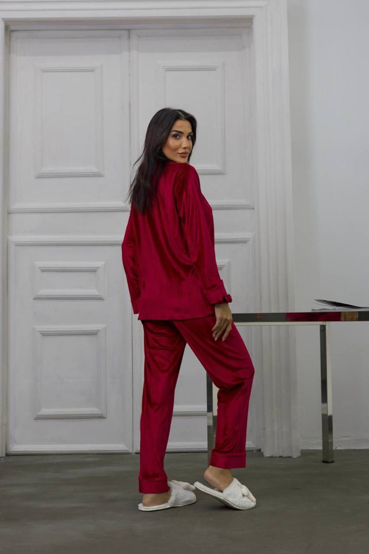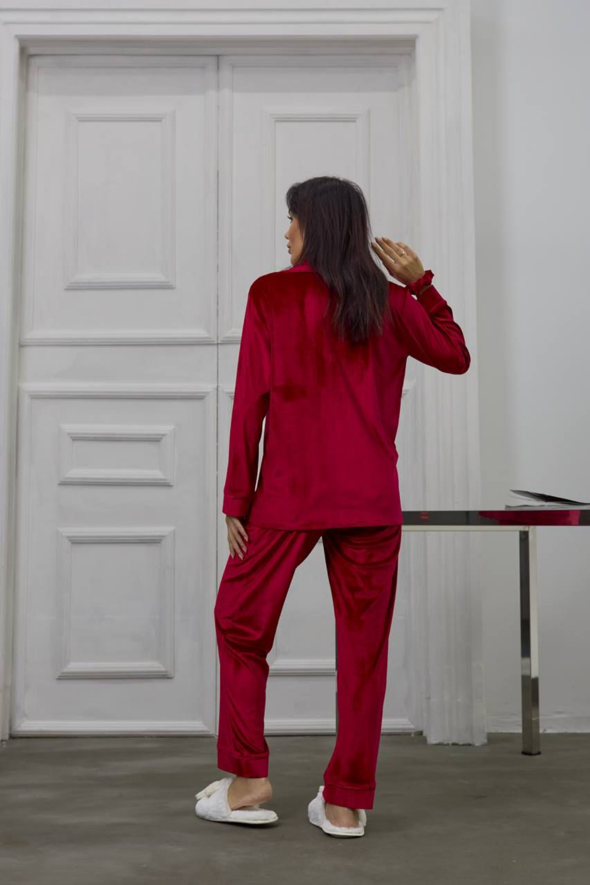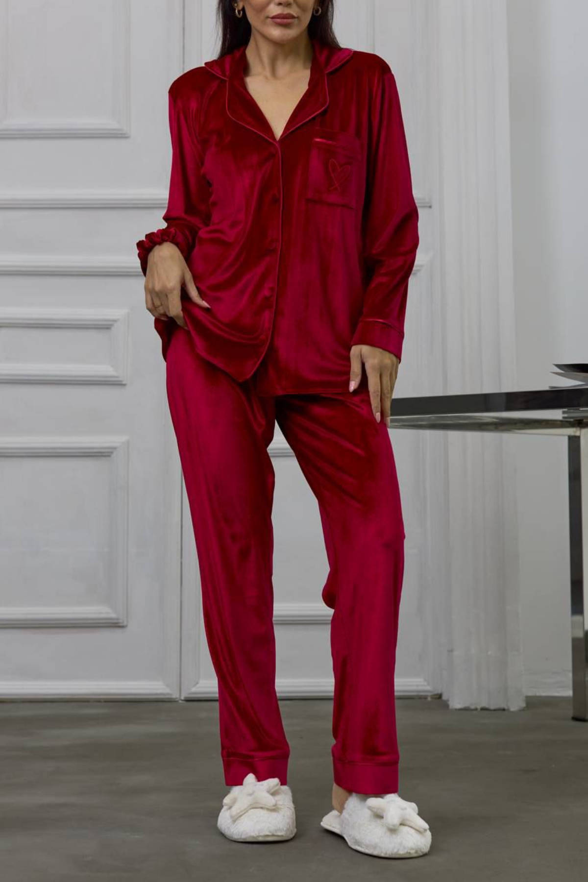 Gizotti Kırmızı Gofrajlı Kalp Nakışlı Uzun Kadife Pijama Takımı ile evde geçirdiğiniz zamanları daha keyifli hale getirin. Şıklığı ve konforu bir arada yaşayın!